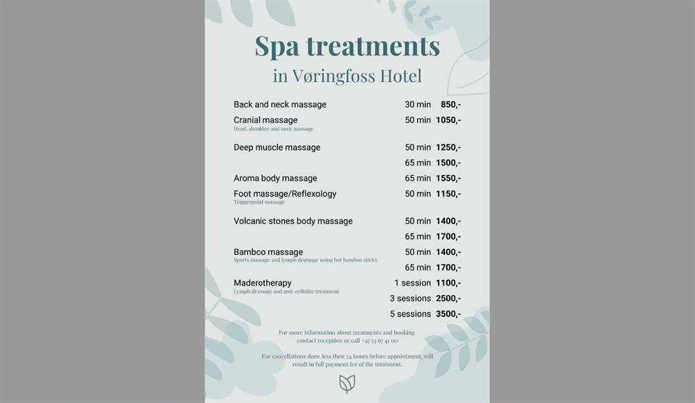 Nyt opphaldet ved fjorden med ein avslappande massasje. Me har ein rik spameny med både aromamassasje, varme steinar, sportsmassasje, anti-cellulit massasje og meir.