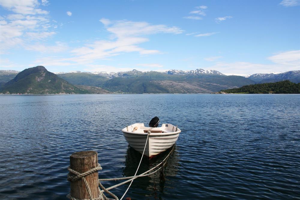 Stove med fullt utstyrt kjøkkenkrok, og to breie senger. Bad med dusj og wc og veranda mot fjorden Vaskemaskin og fryseboks tilgjengeleg. Parkering på tunet. Sengetøy er inkludert.