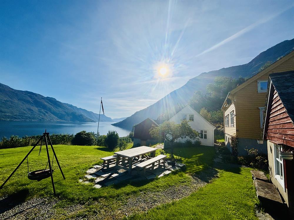 Eigedommen har vore i drift som fruktgard i generasjonar. Eit stort uteområde gjev rom for både avkopling og allsidige aktivitetar for store og små. Frå eigedommen går det fine vegar vidare opp mot fjella, dersom ein ynskjer å utforske nærområdet til fots. Hovudhuset består av stove, spisestove, kjøken, to bad og seks soverom. Kjøkenet er romsleg og godt utstyrt, med alt ein treng for sjølvhushald. Begge bada er av nyare dato og inneheld både badekar og dusj. Uteområdet er stort og variert, med langbord for ti personar. I tillegg er det grill, shuffleboard, små fotballmål, dart og moglegheiter for mange andre uteaktivitetar. Perfekt for både avslapping og moro!