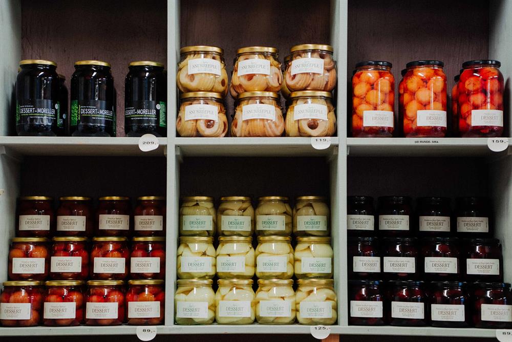 I gardsutsalet, som er ope 6 dagar i veka mellom påske og jul, tilbyr dei foredla frukt i mange fasongar, frå syltetøy til saft og sider. Du finn óg tradisjonelt foredla lammekjøt som fenalår og spekjepølse - alt laga på garden.