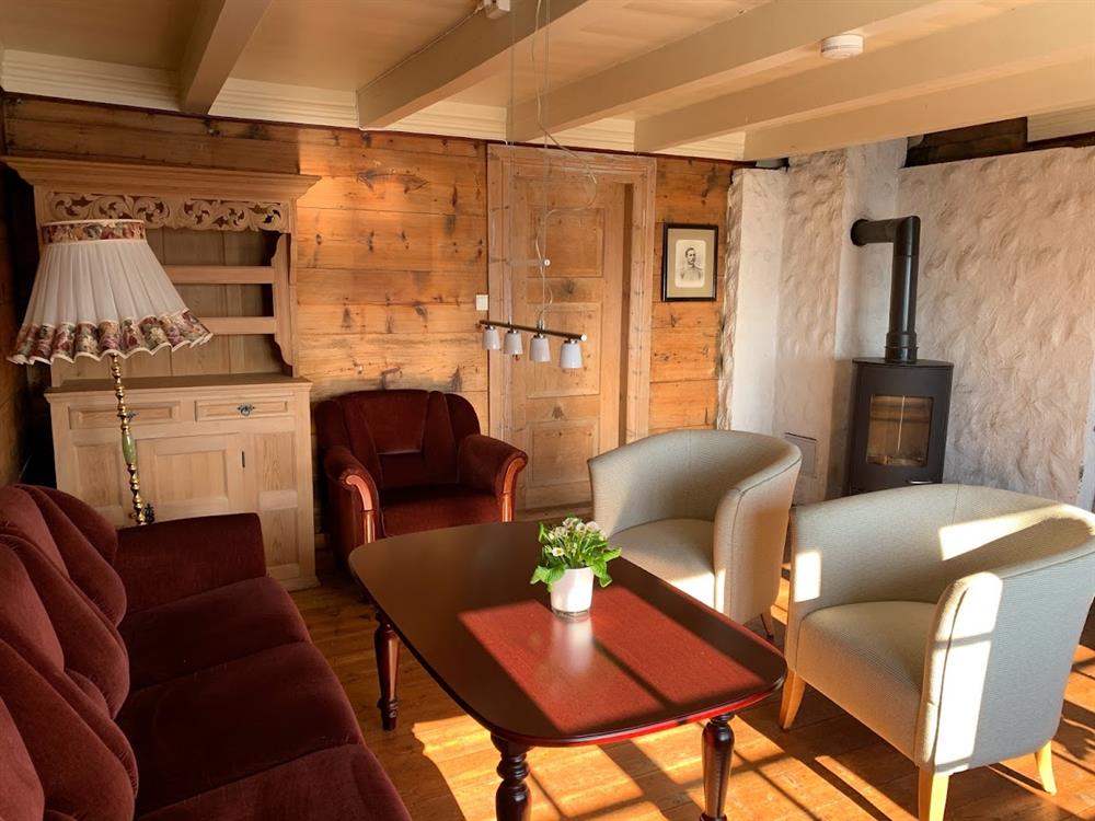 Velkomen til gardslivet på Ljono! Garden ligg på 300 m.o.h., med spektakulær utsikt over fjord og fjell. Huset er ei koseleg tømrastove frå 1850, renovert til dagens standard. I tunet vårt bur det høner, ender, sau, geit og hest.